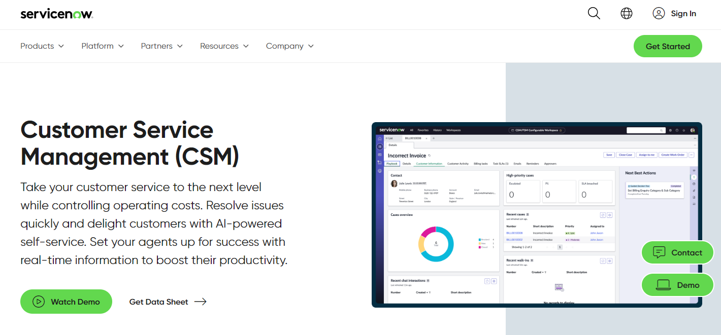 6. ServiceNow CSM: Best for Enterprise-Level Service Management
